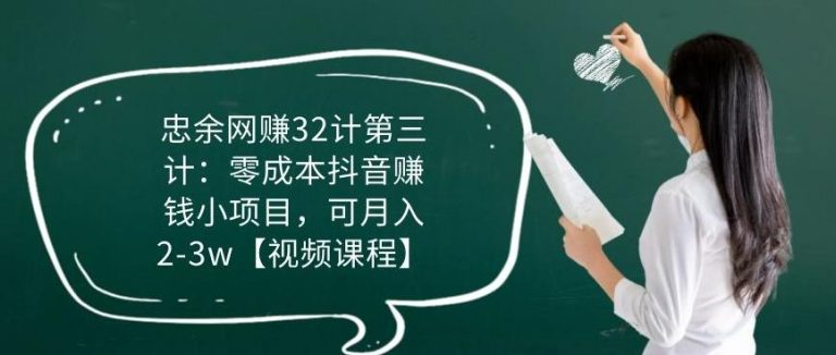 忠余网赚32计第三计:零成本抖音赚钱小项目,可月入2-3w【视频课程】
