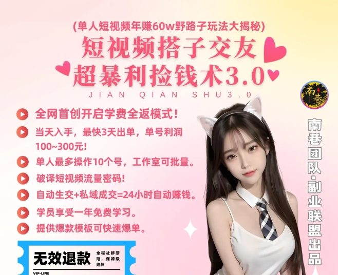 单人短视频年赚60w野路子玩法大揭秘,短视频搭子交友超暴利捡钱术3.0