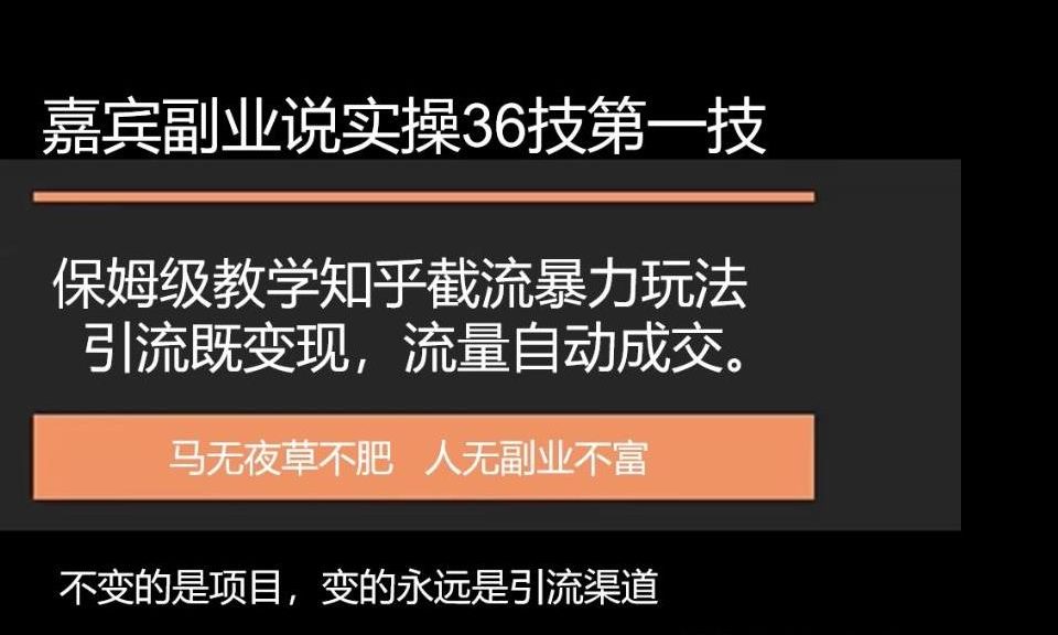 嘉宾副业说实操36技第一技,保姆级教学知乎截流暴力玩法引流既变现,流量自动成交