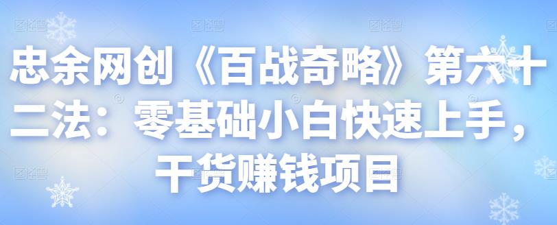 忠余网创《百战奇略》第六十二法:零基础小白快速上手,干货赚钱项目